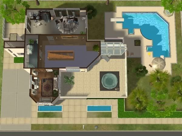 | Как и обещала, выкладываю свое первое творение, но уже полностью мебелированное и декорированное.. Оценивайте! ;) Общий вид 1 этажа (прихожая, гостинная, кухня, комната для занятий спортом, ванная комната) Прихожая Гостинная Ванная комната Комната для занятий спортом Кухня Второй этаж (спальня, кабинет, ванная комната, балкон с джакузи) Спальня Кабинет Ванная комната Балкон Бассейн